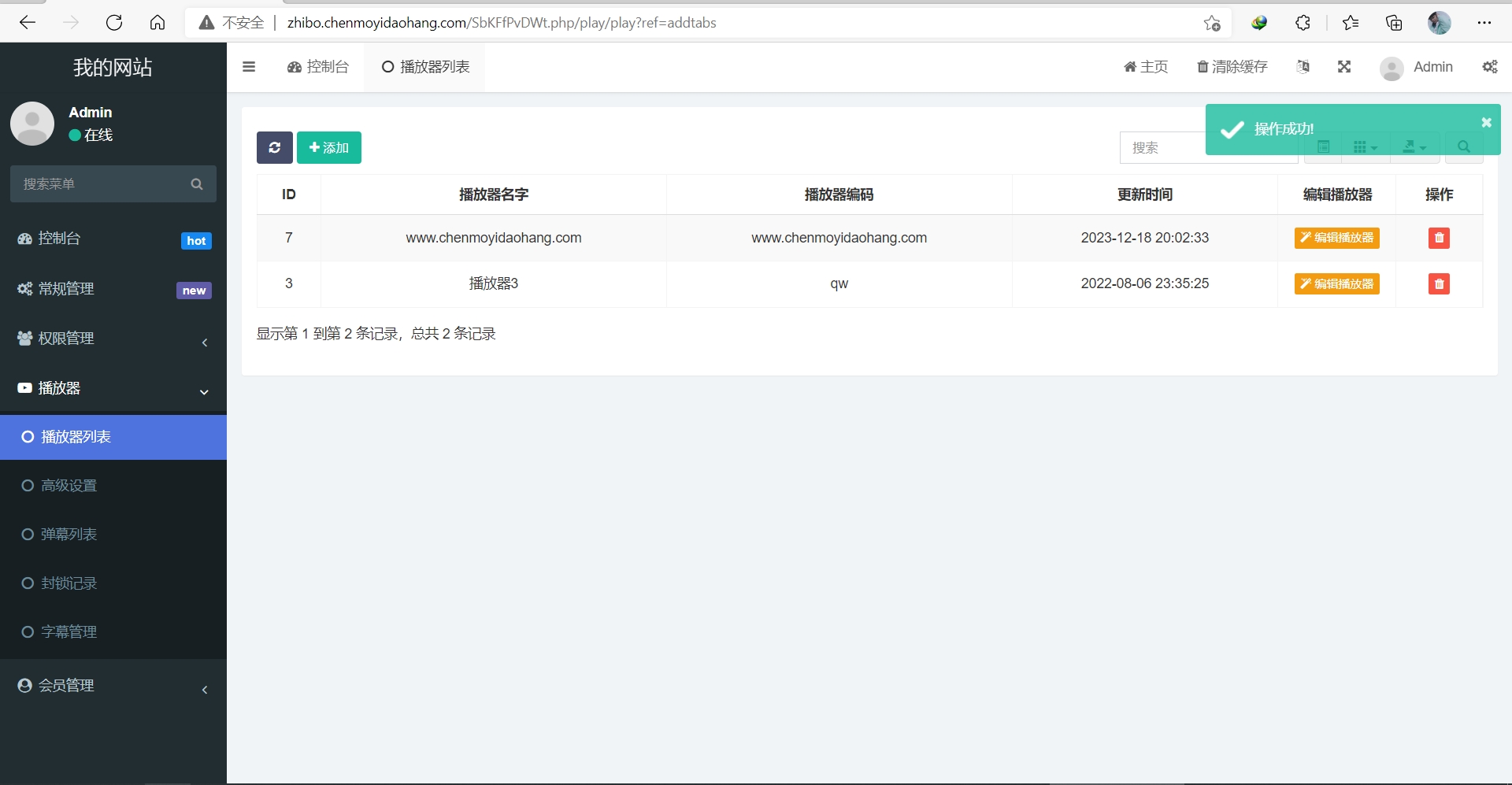 3.打开苹果cms后台添加播放器即可