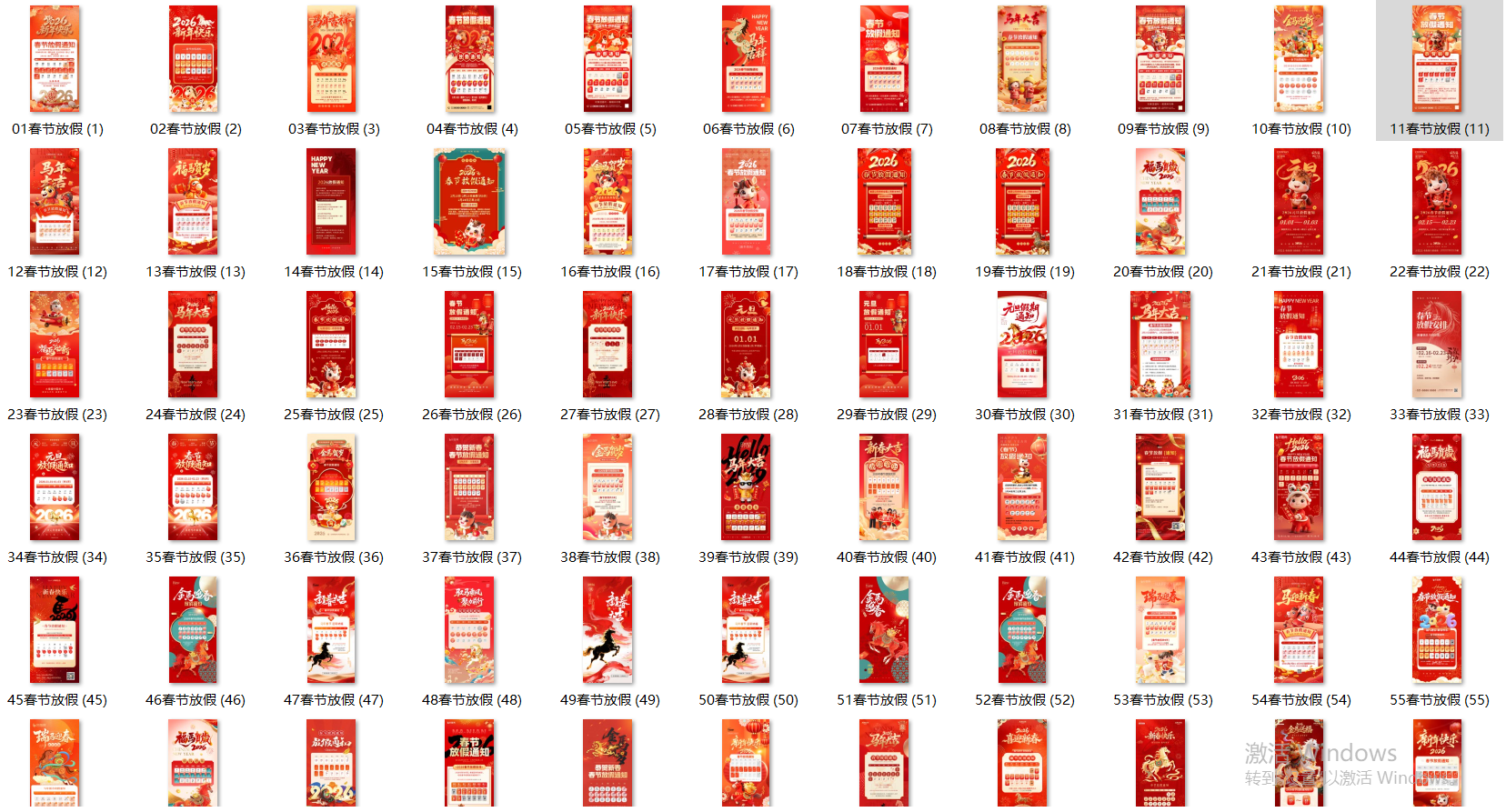 2026马年新年新春春节放假通知PSD素材手机海报模板 86款 12GB